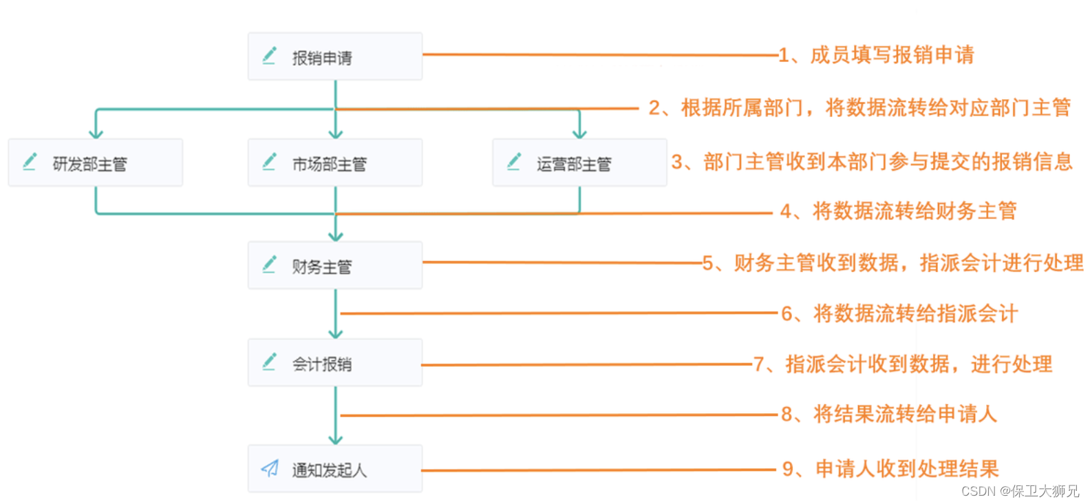 以报销申请为例,过去,员工需要手动填写报销表格并将其提交给相关部门进行审核和批准。现在,通过自定义流程节点,报销申请和审批可以自动化进行,大大简化了整个流程: