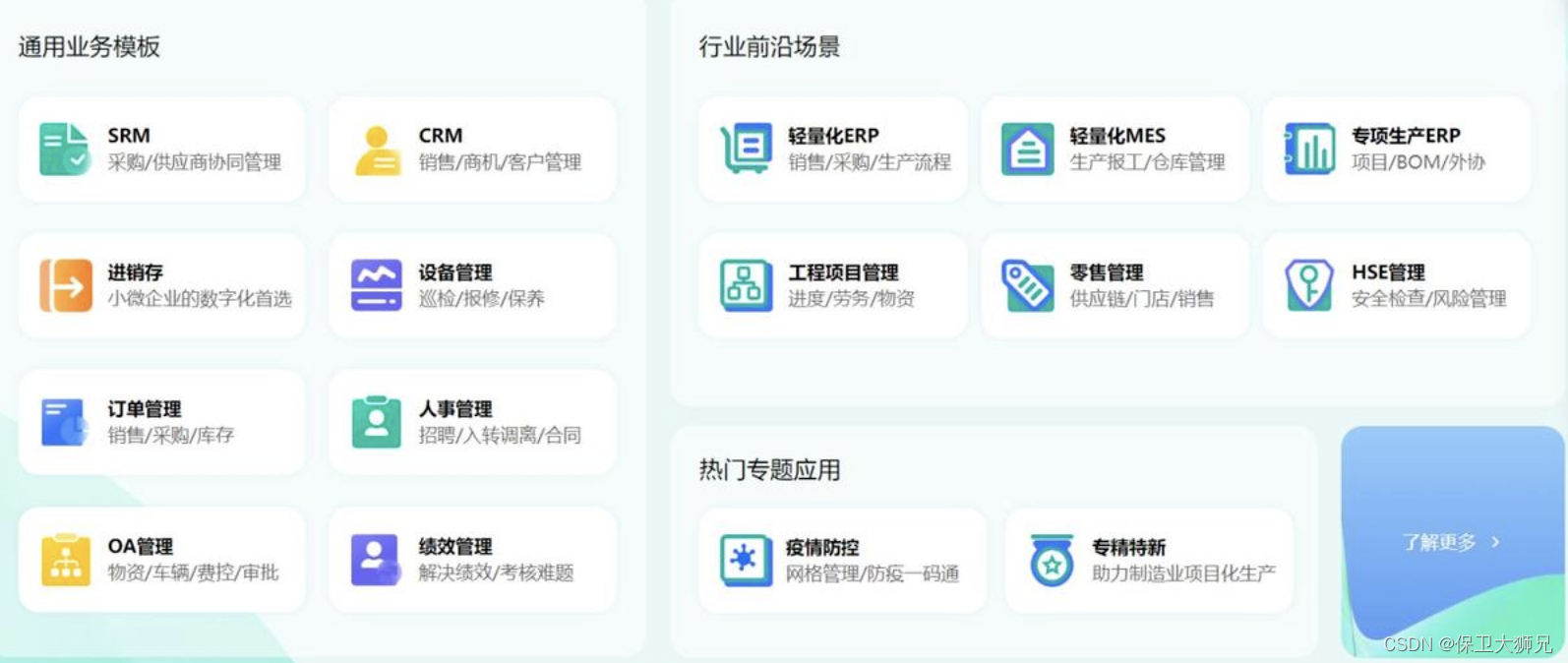 很多SaaS软件还提供了丰富的行业通用模板,即开即用,比如进销存管理模板、ERP管理模板、CRM管理模板等等,还支持自定义修改,灵活性够强。