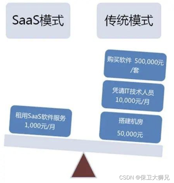 根据 优快云 云计算统计,使用云计算 SaaS 模式后,订阅成本相当于原来传统软件采购成本的 20 %左右,极大地降低了成本。