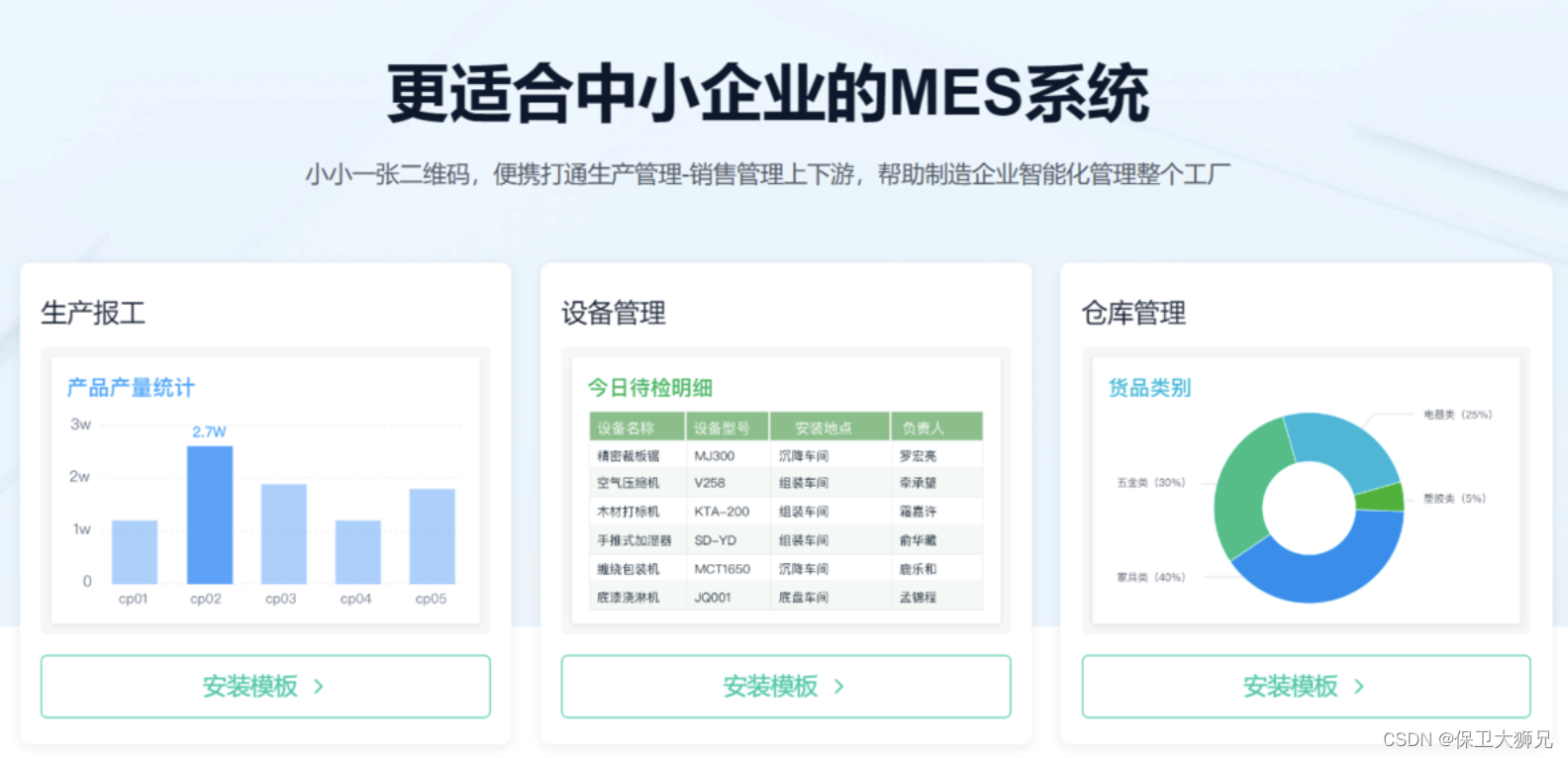 我们公司搭建的这款MES系统,用小小一张二维码,帮助制造企业智能化管理整个工厂,全面解决信息化痛点: