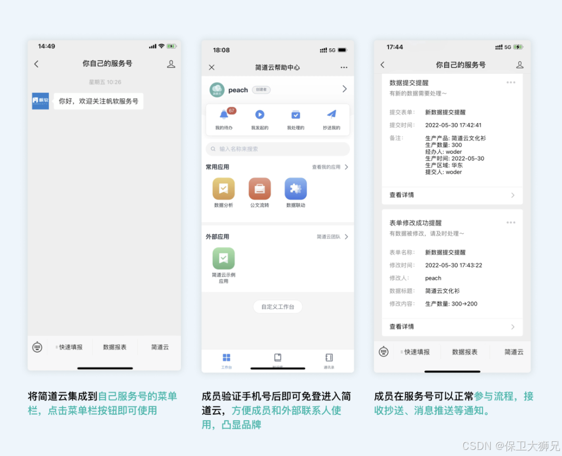 从灵活程度来看,简道云提供了高度的自定义能力,允许用户根据实际需求调整项目模板、工作流程和报表样式。同时,它还支持与其他企业应用的集成,如钉钉、企业微信等,进一步提升了系统的灵活性和扩展性。