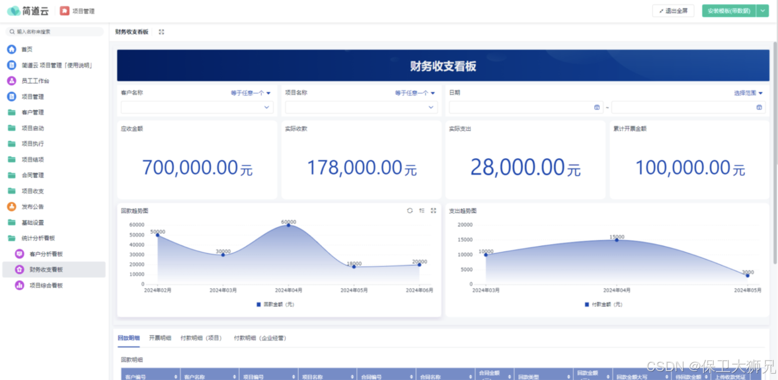 简道云项目管理系统模板,可以查看和使用:https://www.jiandaoyun.com
