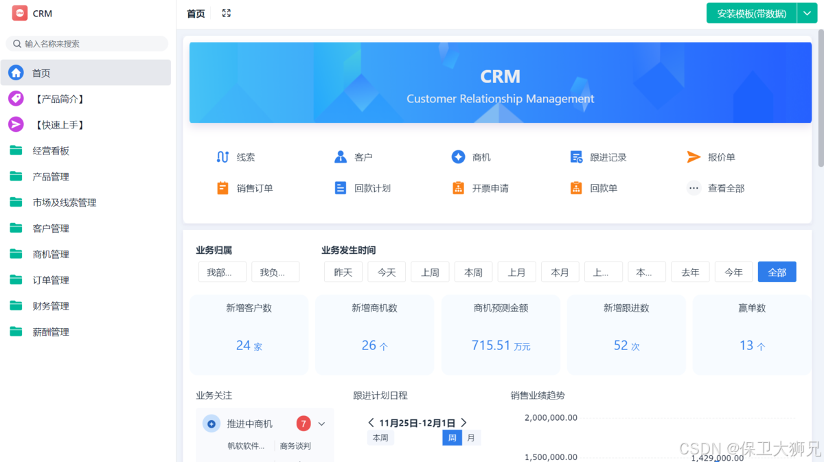 2.提升销售业绩:利用CRM对销售流程进行自动化管理,比如线索分配、销售跟进、合同审批等,可以有效提升销售团队的工作效率和成交率,从而提升企业的整体销售业绩。