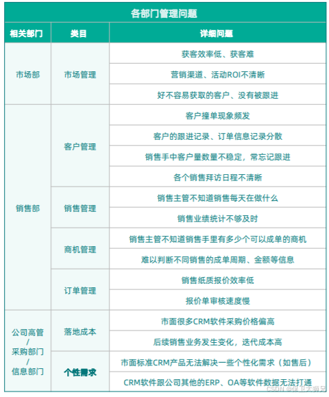 一般来说,企业引进CRM都会有以下几个常见需求: