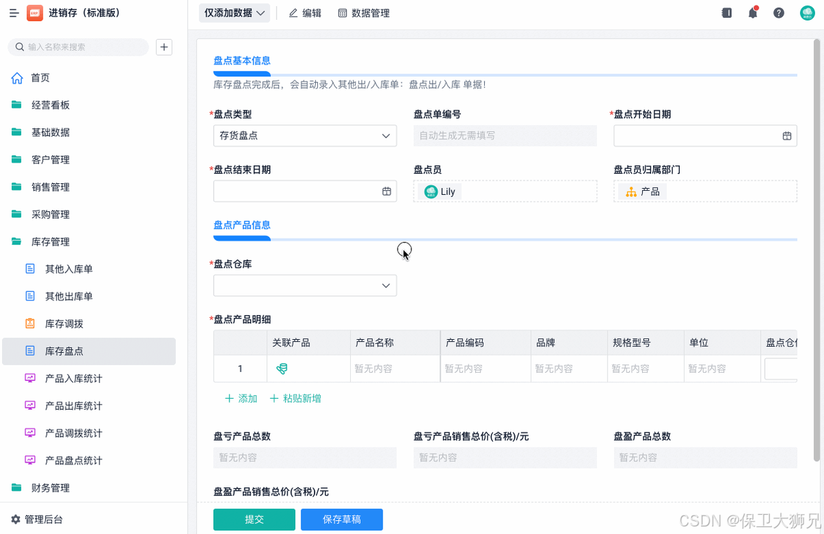 - 自动报表生成:使用进销存系统后,可以根据实际需求自动生成各种报表,包括库存报表、销售报表、采购报表等,系统会自动从各个环节提取数据,减少人工操作带来的误差。