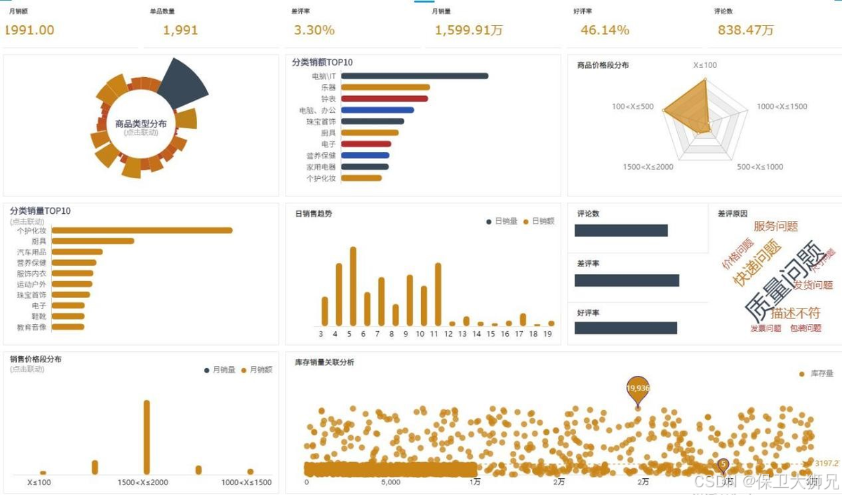 - 商品销量与库存周转率:分析哪些商品卖得好,哪些滞销,及时调整营销策略和库存。