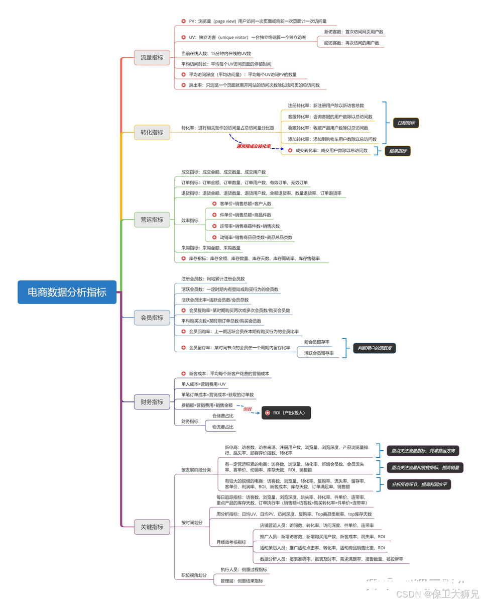 这些关键指标会帮助你更清晰地看出自己电商业务的健康状况,下图是一份比较全面的电商数据分析指标,可参考。