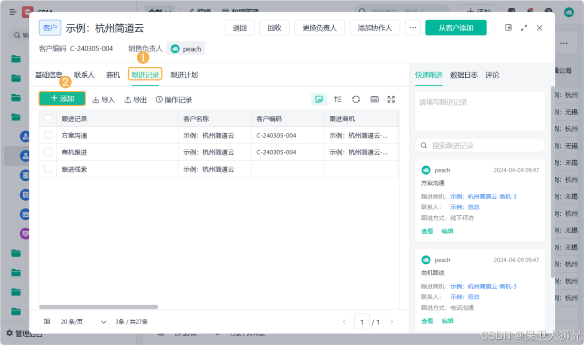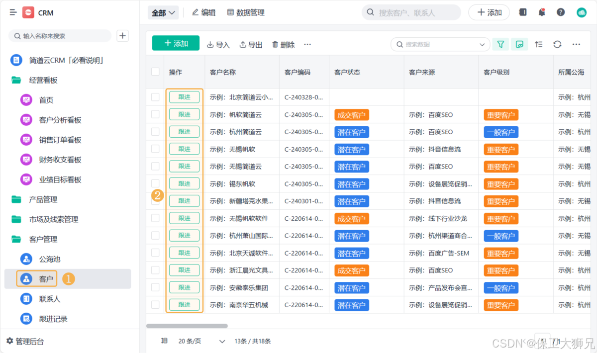 在进行客户跟进时,要结合实际情况,选择合适的跟进方法和技巧,注重每个环节的细节和效果.同时,借助客户管理系统,如CRM系统等工具,能够提高客户跟进的效率,帮助企业更好地管理客户信息,提升客户体验。