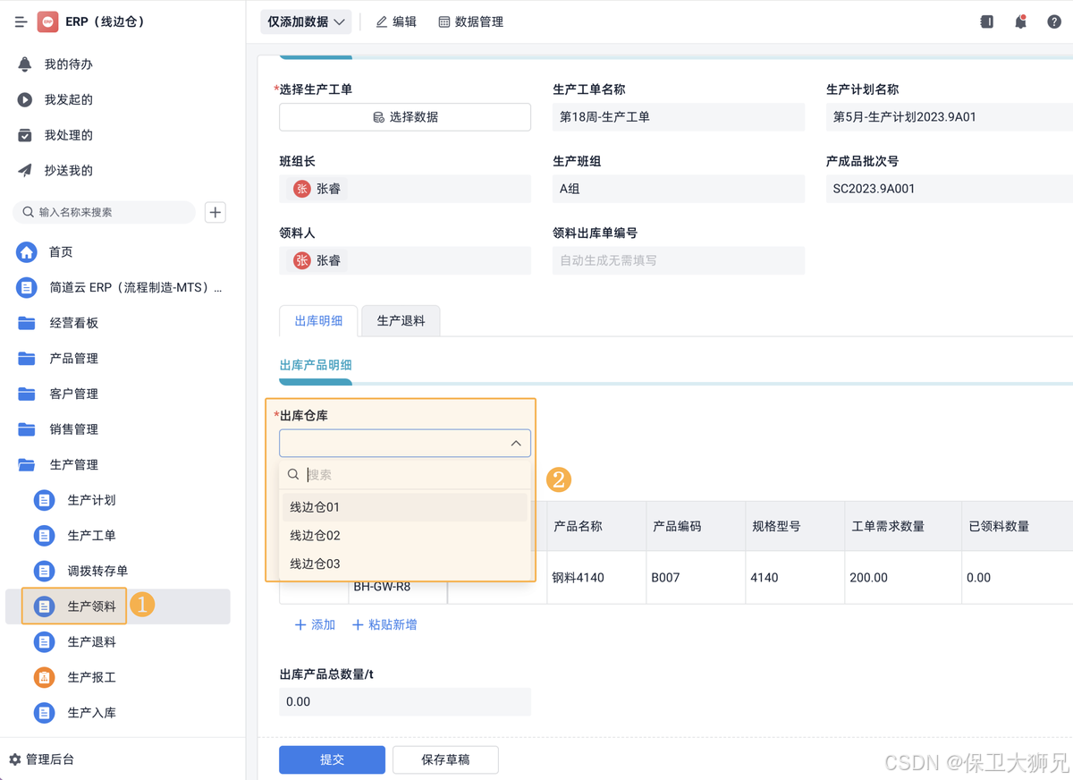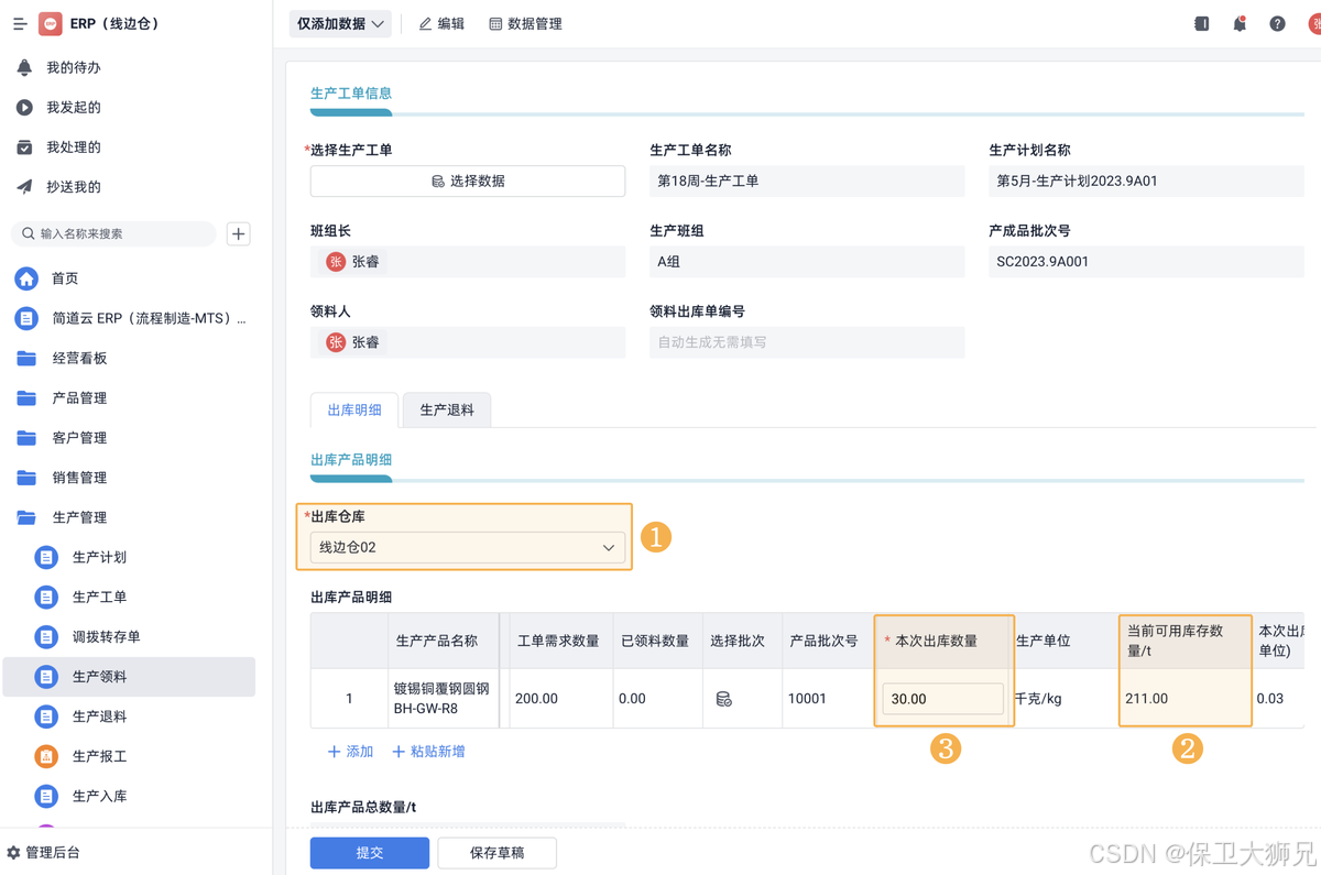 计算好线边仓库存后,领料时,就可以查询仓库中的实时产品库存,并进行相应的库存校验,确保不会超过已有库存出库: