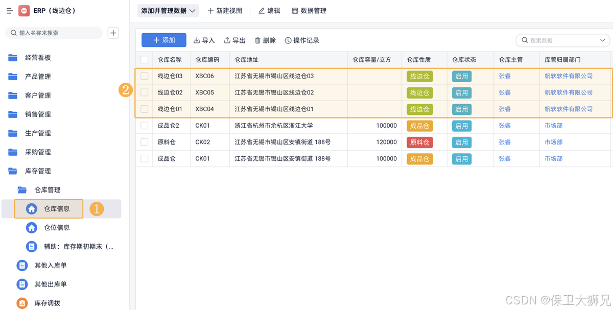 - 设立线边仓:在仓库表中录入线边仓的仓库信息