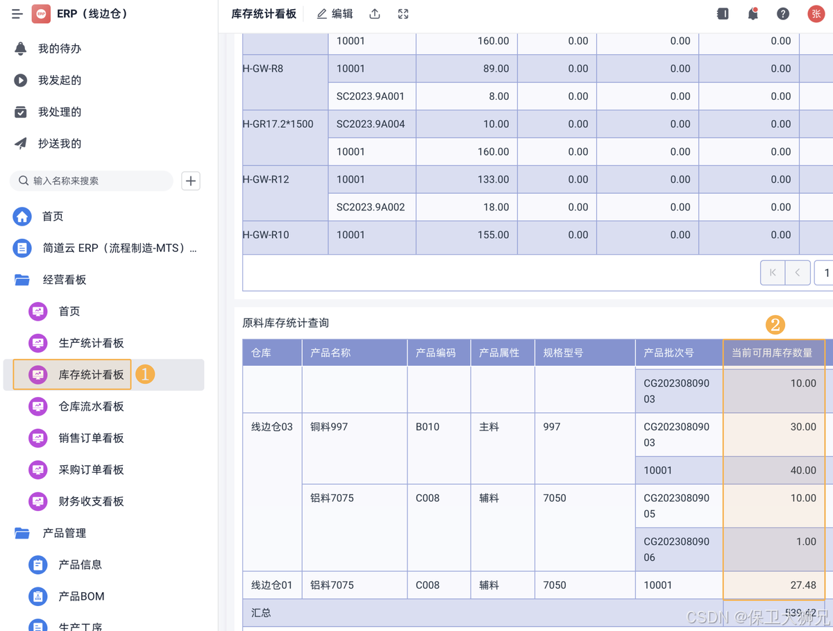 - 库存查询看板:通过仪表盘展示库存数据,仓库管理员可以实时查询最新线边仓库存