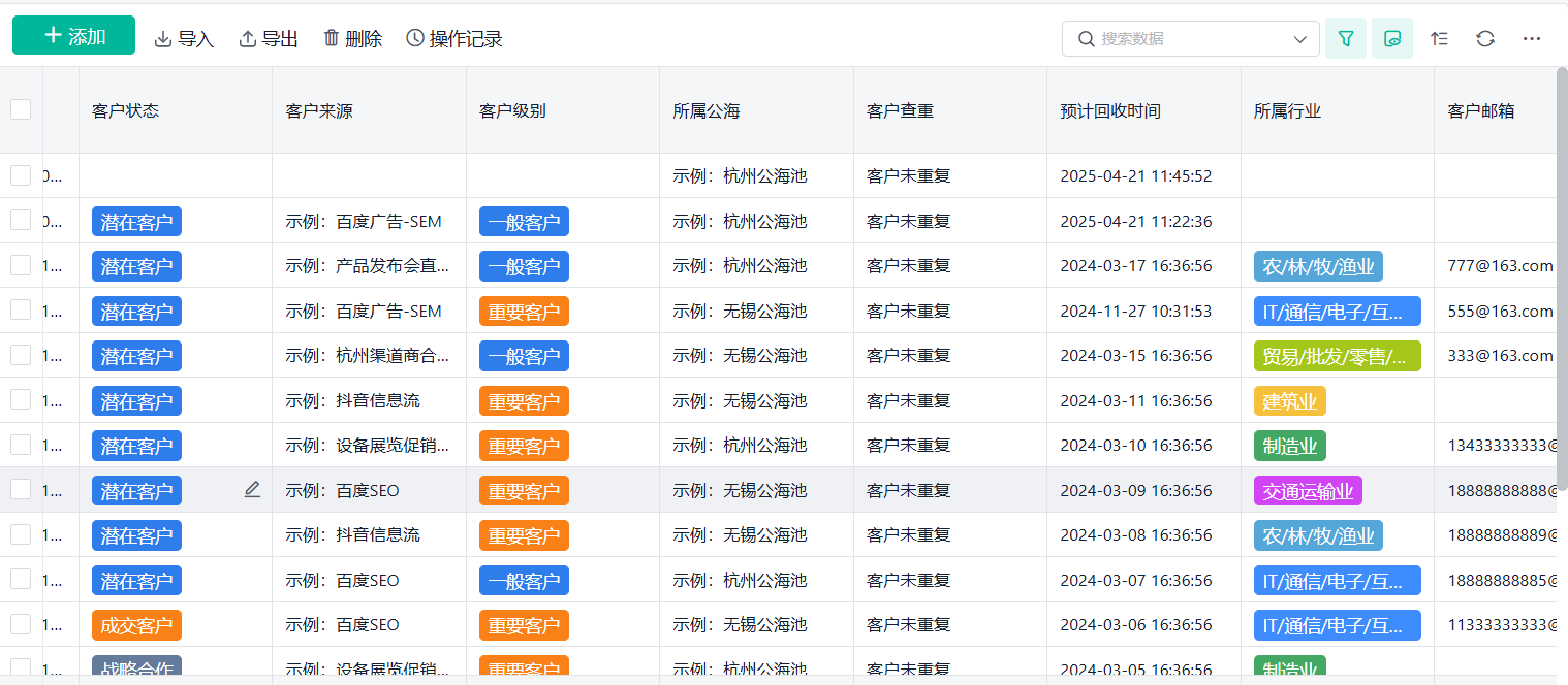 CRM系统的核心就是“客户数据”,无论是客户的基本信息,还是他们的购买历史、互动记录、反馈意见等,CRM系统都会帮你统一记录下来。