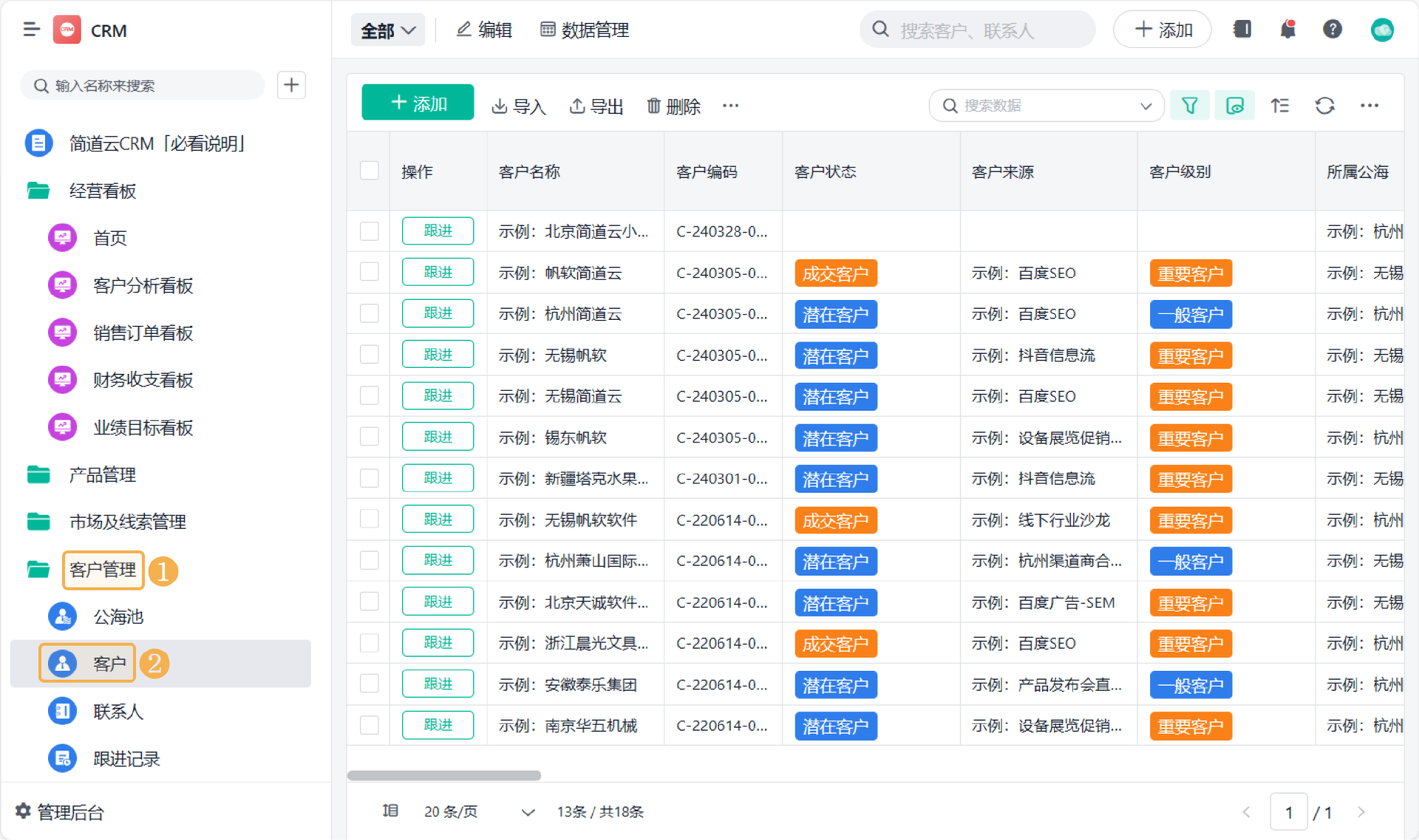 1. 客户数据集中管理