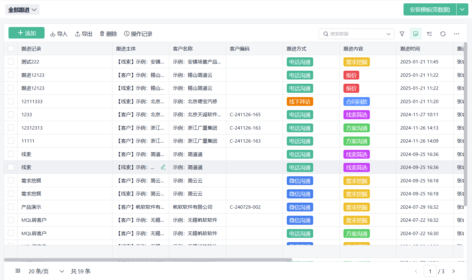 文中展示的CRM系统均以整理成模板,需要可点击试用。
