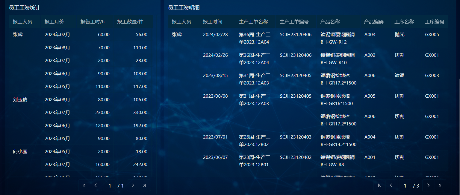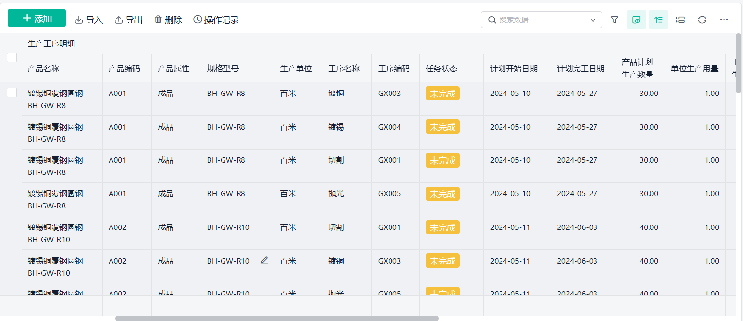 小工单的好处就是,每个工序的数据都会被实时记录在系统里,包括: