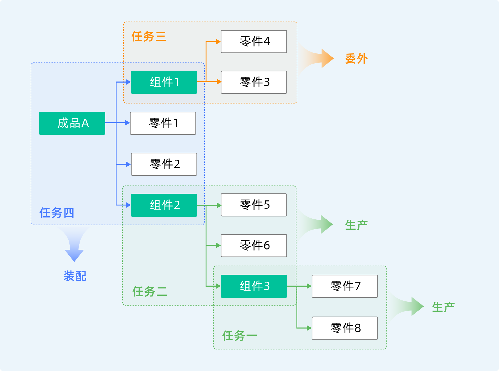 - 订单 A 的 装配工单