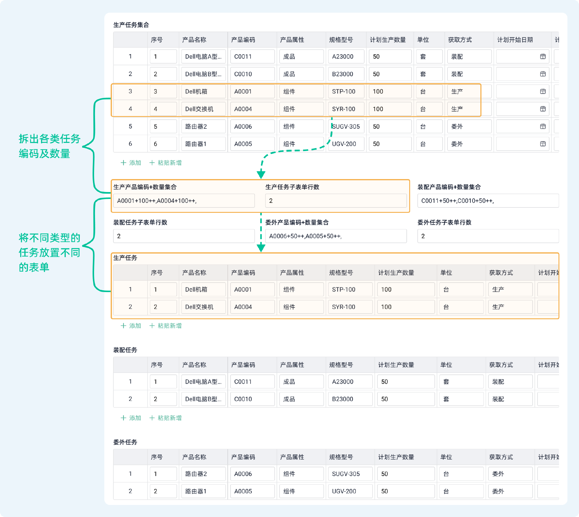 “订单A的材料切割工单”、“订单A的焊接工单”……