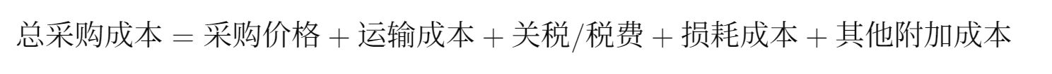 总采购成本=采购价格+运输成本+关税/税费+损耗成本+其他附加成本