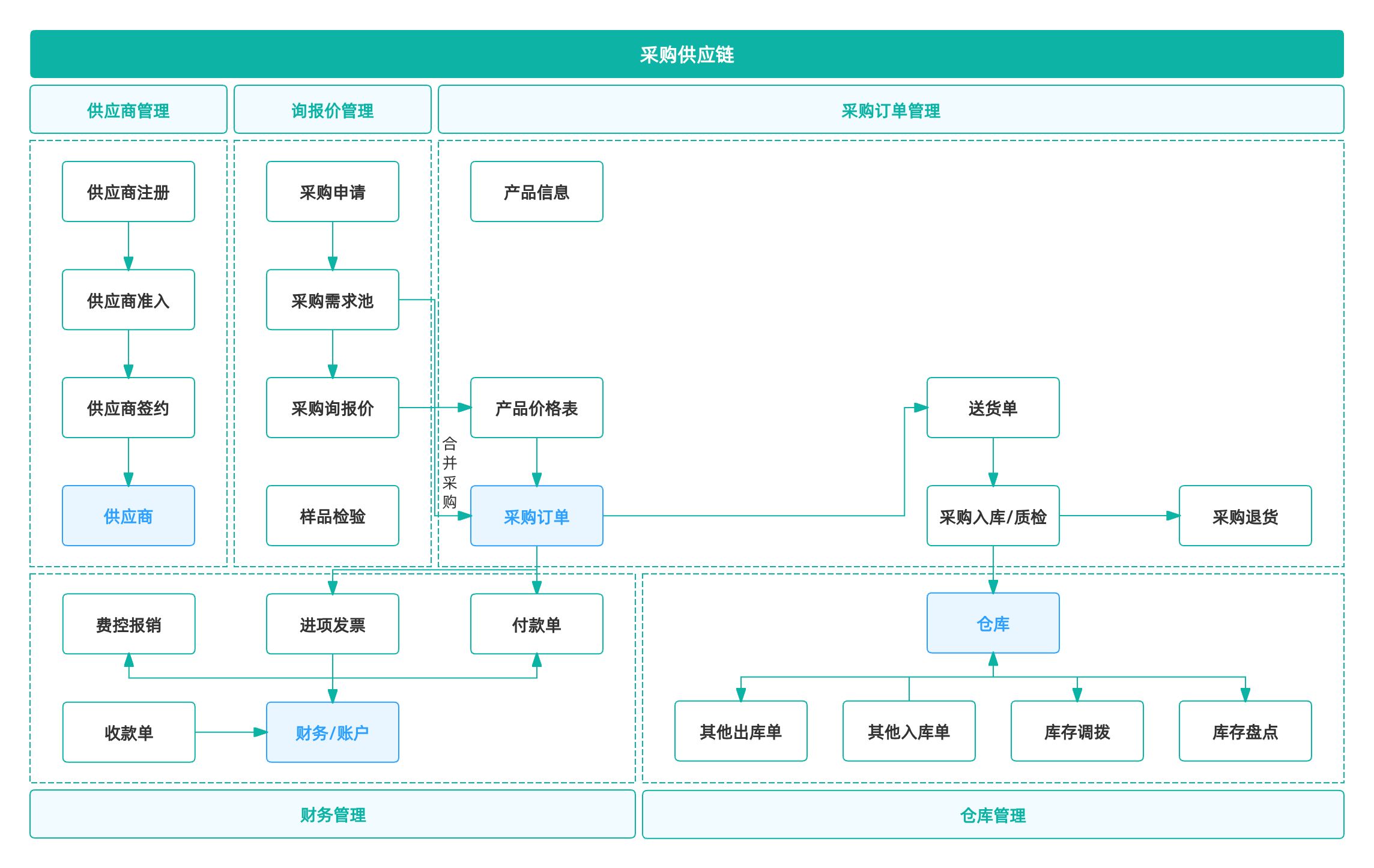 供应链不是一个点,而是一整条业务流程,通常我们把它划分为 “五大环节”: