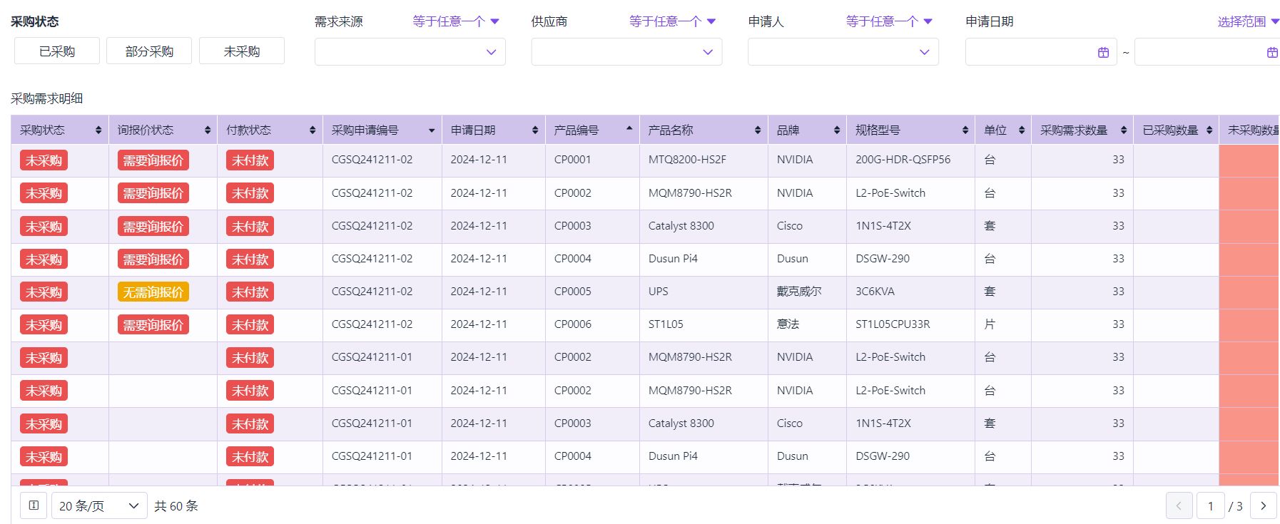 - 采购执行中 → 系统实时更新供应商交期状态,延迟会自动预警给计划员。