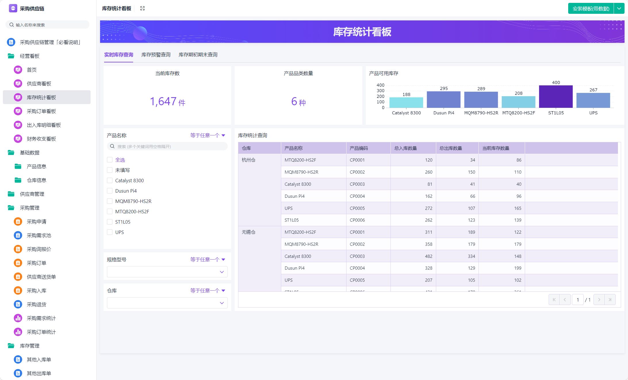 - 实时库存:所有仓库库存统一到系统里,按批次、按库位可查。
