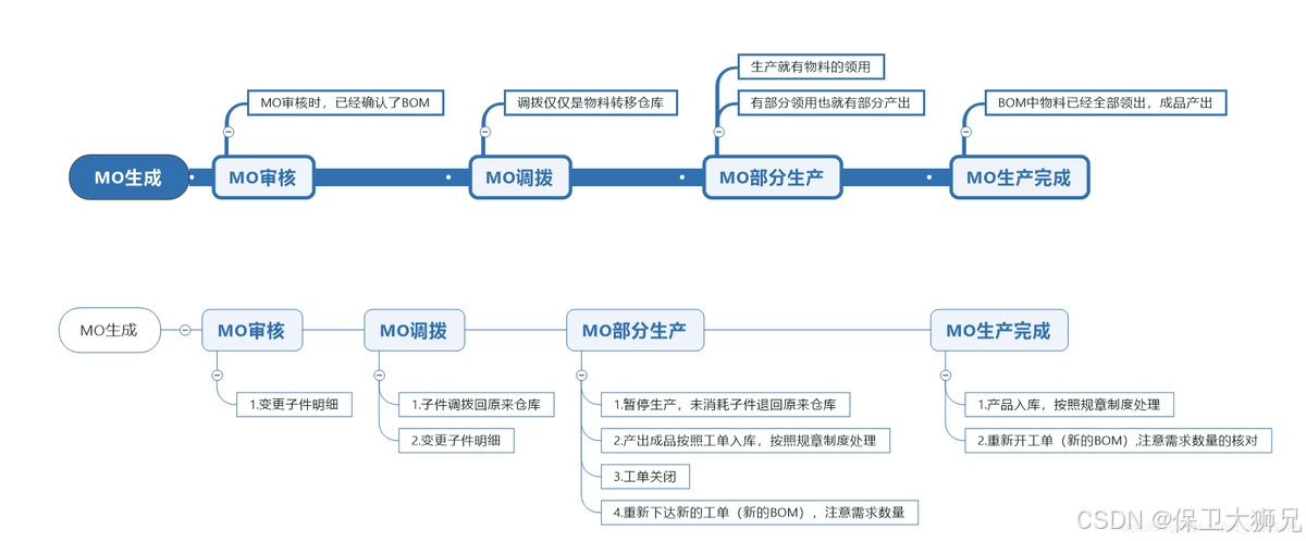 - 通知:自动推送给相关人员,比如采购知道要换料,仓库知道要冻结库存。