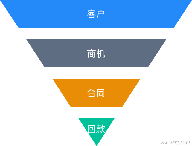 看出来没?这就是漏斗模型:数量大 → 慢慢筛选 → 留下的少。
