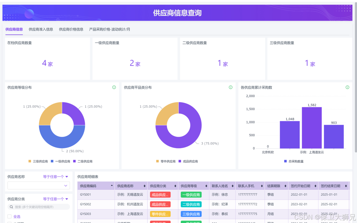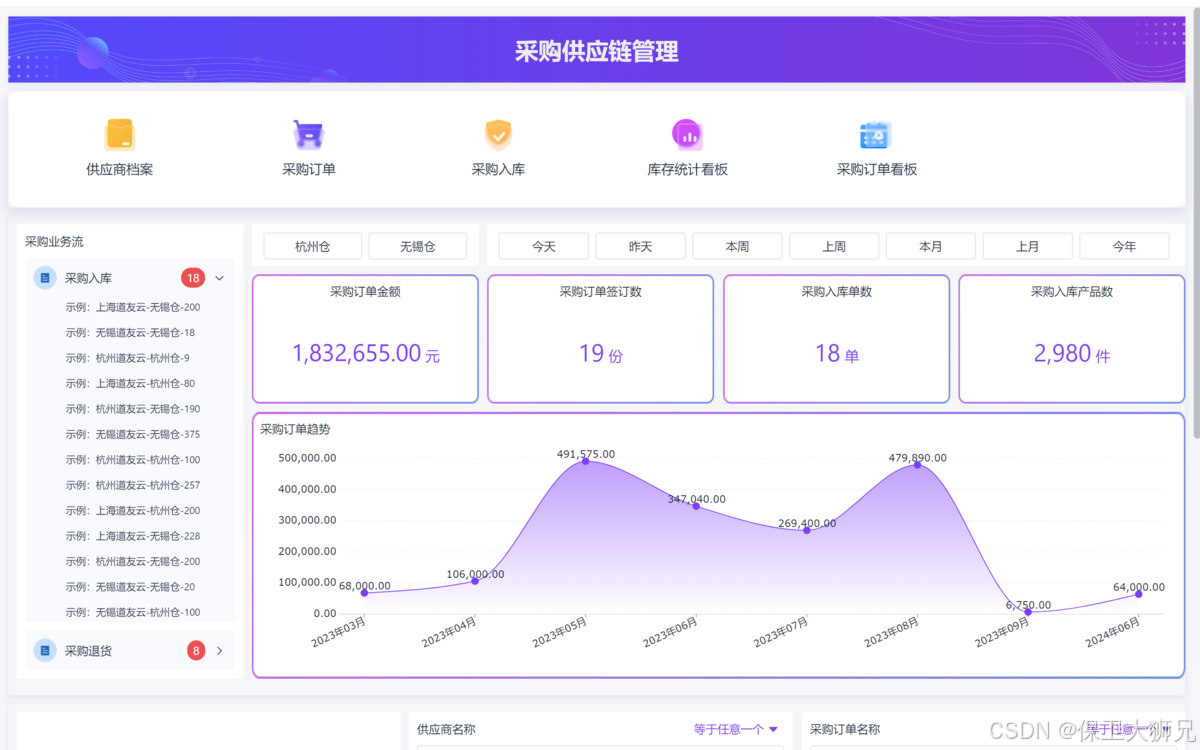 这时候你看到的就是业务的真实映射:供应商绩效看板、采购执行率、库存周转天数、供应商交付准时率、成本构成分析......每个数字都活着,每个变化都有意义。
