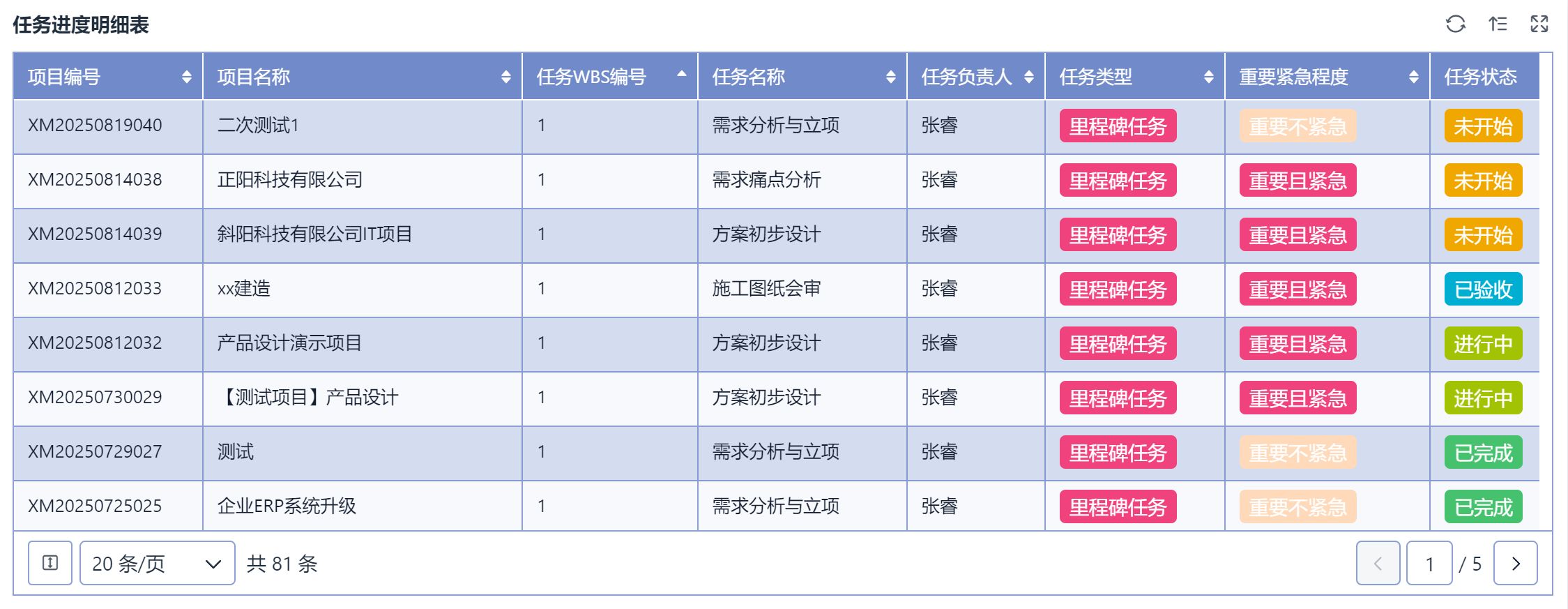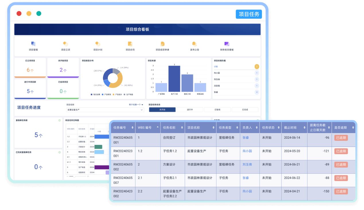 每一个小任务都能分配到人、安排时间,这样就能清晰地看到项目进展。