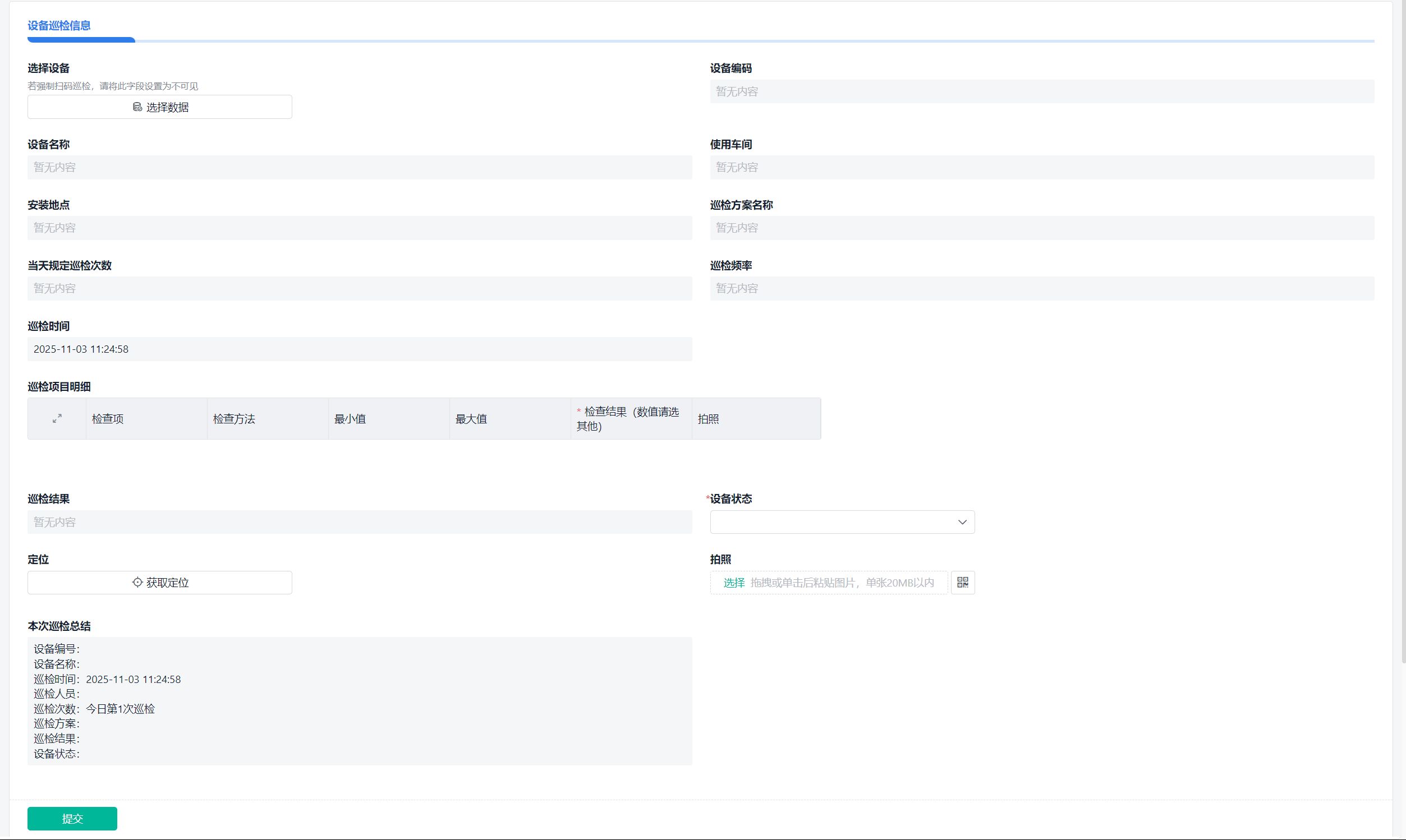 - 巡检表格每天都更新,拍照打卡齐全,