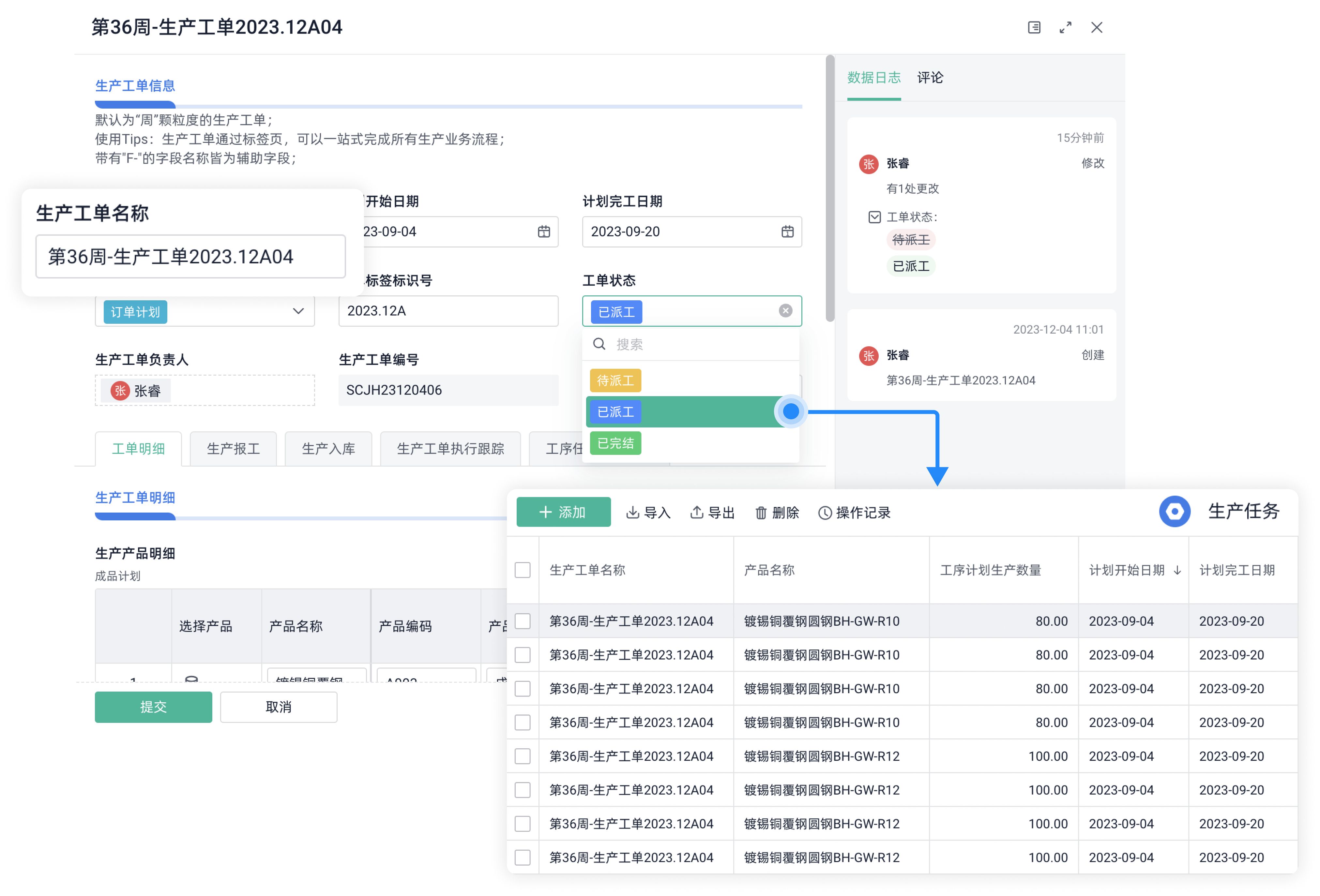 - 工单下发与执行跟踪:工单做到哪一步,产量多少
