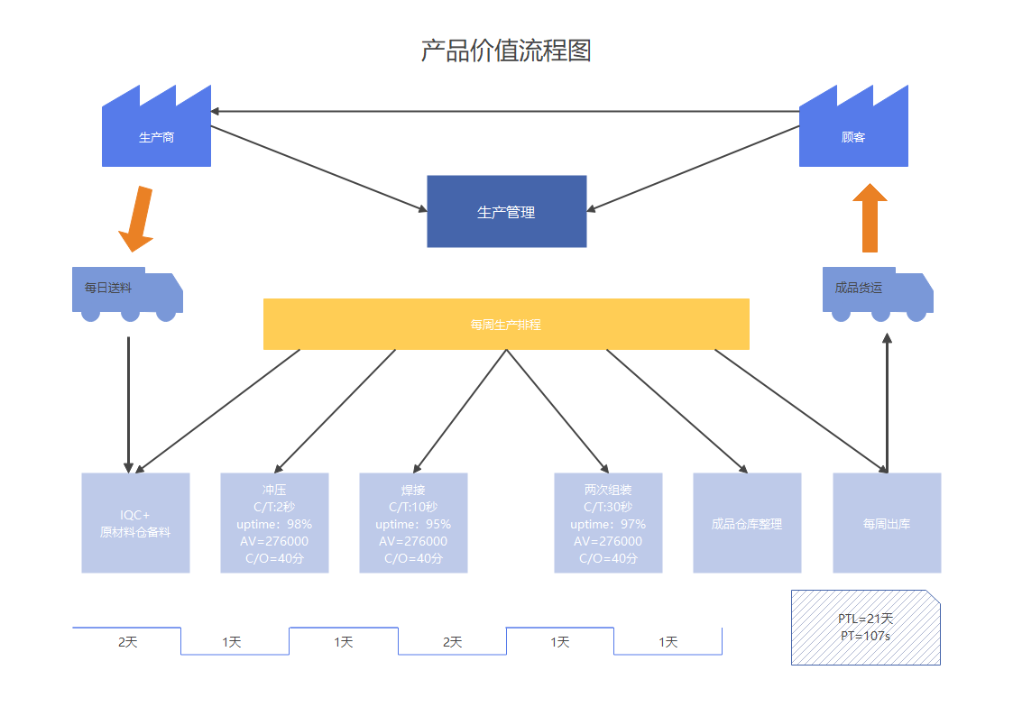 通过绘制整个生产流程,找出哪些环节在增值,哪些环节在浪费。