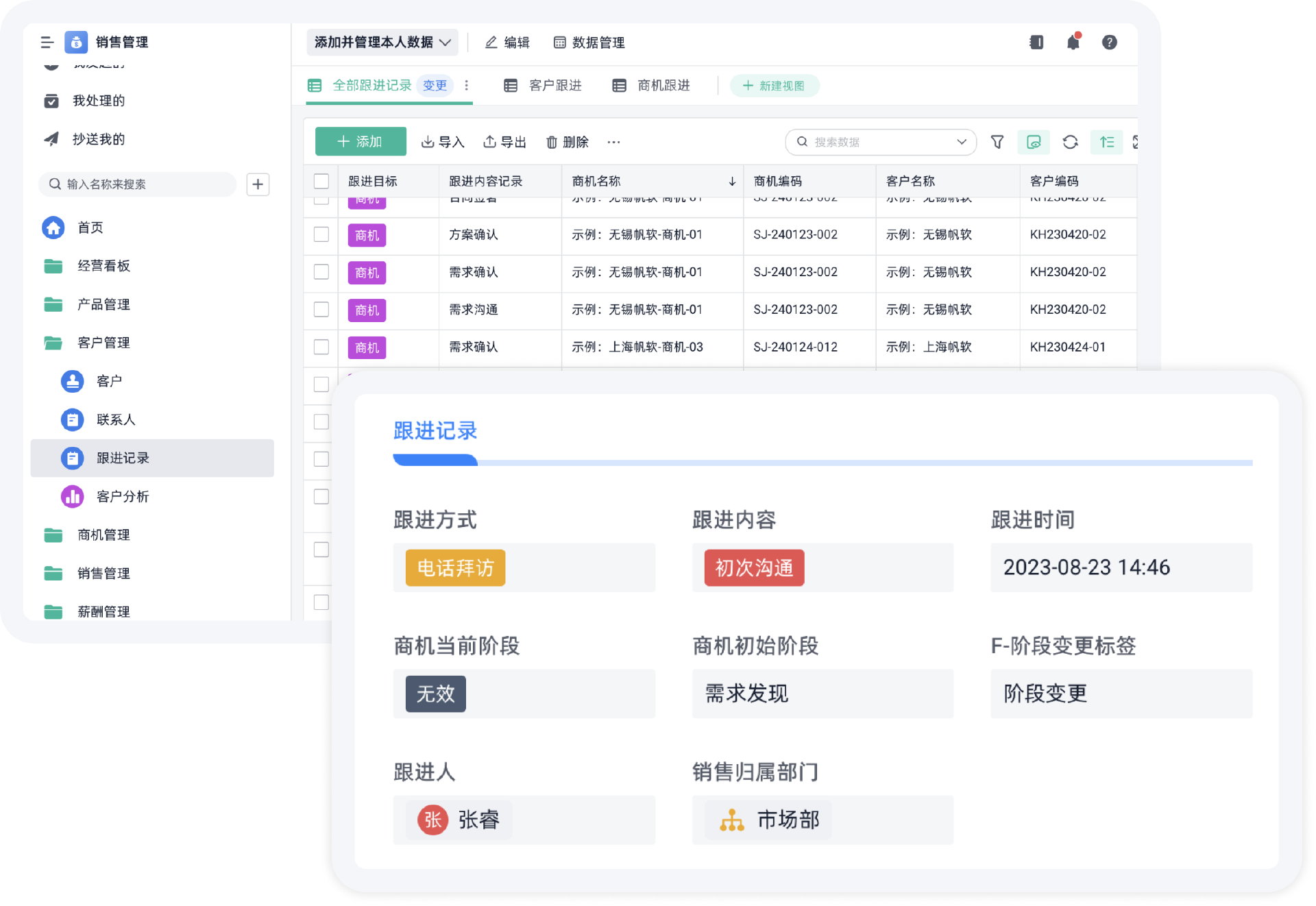 包括你们聊过的一些生活化内容,也可以简短记一下。 这样下次再联系,不用从零开始寒暄,也不会忘记他的关切点,同时你在系统里也能清楚看到:这位“朋友”,现在具体走到什么业务进度了,不会因为关系好就忘了该推进的事。