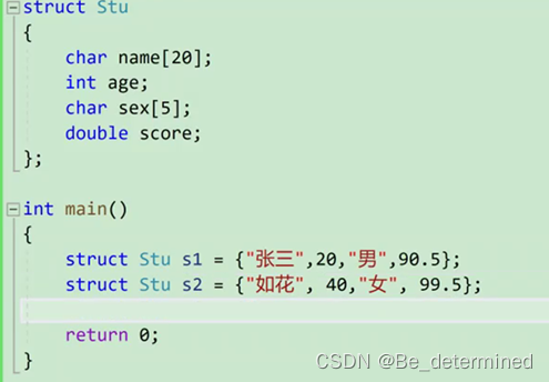 定义struct stu不需要空间,但是创建结构体变量需要空间,如后面的s1、s2需要空间。