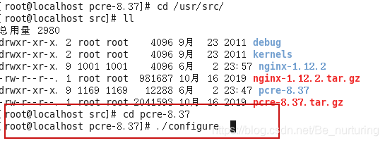 1-1 执行解压 tar -xvf pcre-8.37.tar.gz 我这里已经解压好了