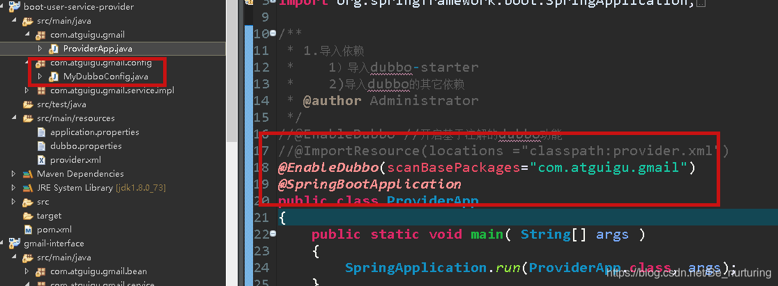 2.XML 次之,如果在 XML 中有配置,则 dubbo.properties 中的相应配置项无效。相当于和spring整合项目里的provider.xml,与springboot整合的application.properties文件