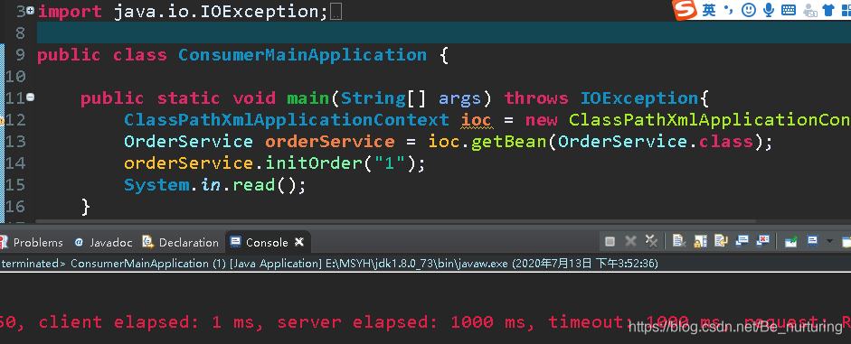①启动服务提供者主启动类ProviderMainApplication,然后在启动消费者主启动类ConsumerMainApplication