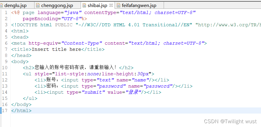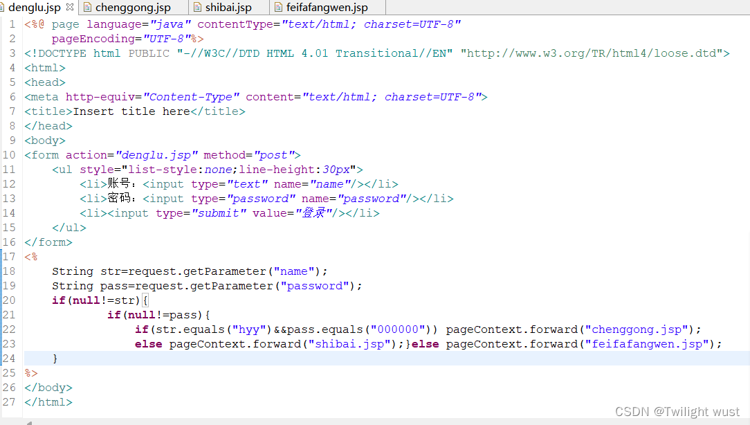 编写登录,登录成功,登录失败和非法访问页面: