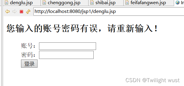 输入错误的账号和密码:
