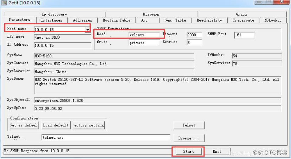 这里我们使用工具Getif来查询OID,输入交换机管理IP和团体名称: