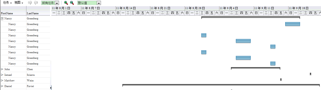 (3)设置Gantt整个起止时间,因为只有2011年8月和9月才有数据,因此设置范围为8月1日到10月1日。
