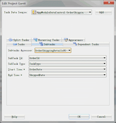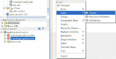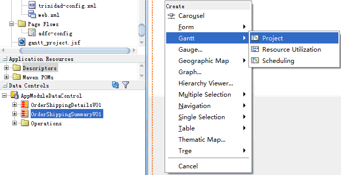 5. 拖放DataControl:OrderShippingSummaryVO1,选择Gantt-->Project