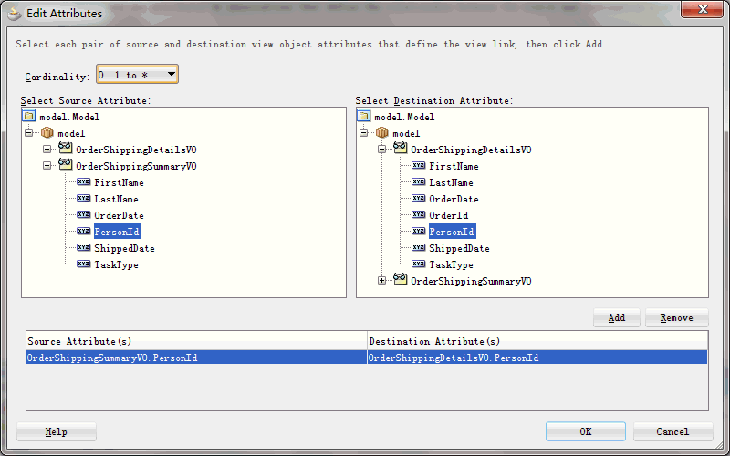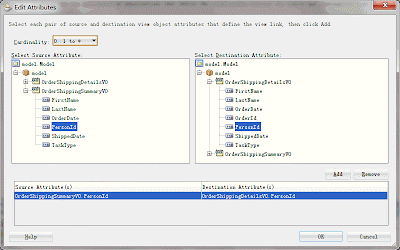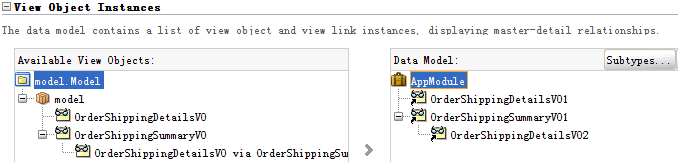 3. 创建MasterVO和DetailsVO之间的ViewLink关系:OrderShippingSummaryToDetailsVL