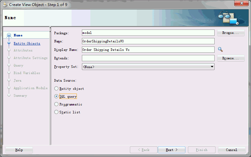 1. 通过SQL语句创建Master VO:OrderShippingSummaryVO