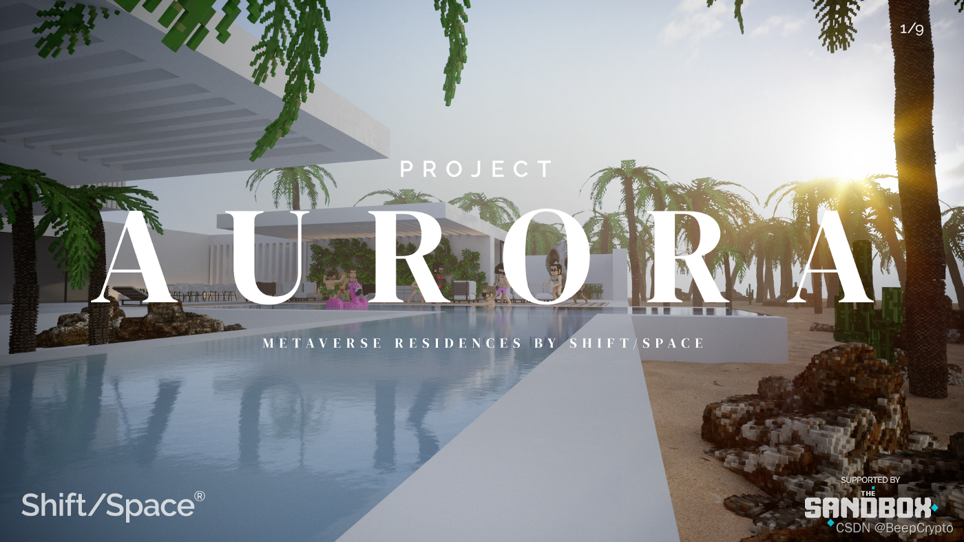 他们的目标是将当代特色建筑带入 The Sandbox 元宇宙。随着“极光项目”第一座别墅的推出,Shift/Space® 正式在虚拟和现实世界开启了他们的新工作室,开始计划、设计和搭建前卫的建筑。该系列总共包含 9 个住宅,并配有定制资产和现代建筑。
