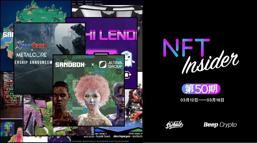 引言:NFT Insider由WHALE社区、BeepCrypto联合出品,浓缩每周NFT新闻,为大家带来关于NFT最全面、最新鲜、最有价值的讯息。每期周报将从NFT市场数据,艺术新闻类,游戏新闻类,虚拟世界类,其他动态类,五个角度剖析NFT市场现状,了解NFT,读NFT Insider周报就够了。