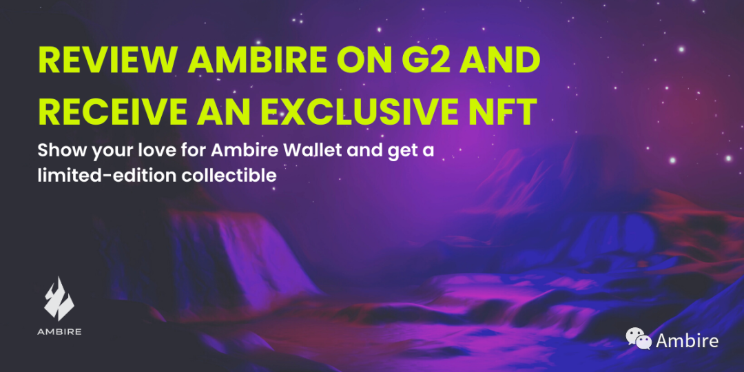G2 平台是我们的合作伙伴之一,现在他们正在举行一个特别的活动。限量版 NFT 正在抢购中,你所需要做的就是在 G2 上对 Ambire 钱包做出评价。