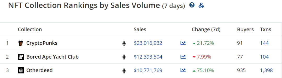 CryptoPunks 持续占据七天交易额第一