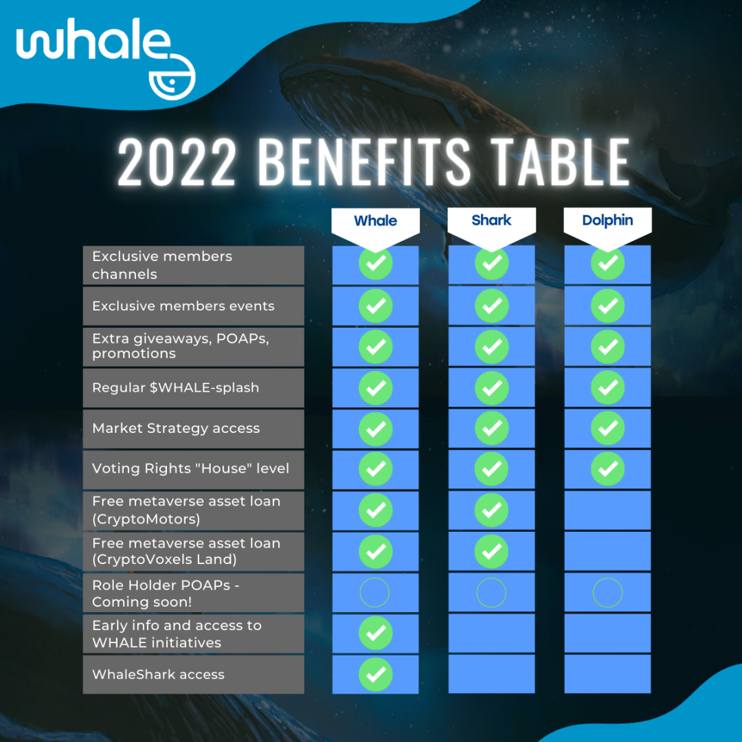 💠 我们的 Hold-2-Play 会员都可以共享访问由 NonFungible 完成的每月审计、访问 WHALE 每月预算、访问市场分析渠道,以及更多其他内容。