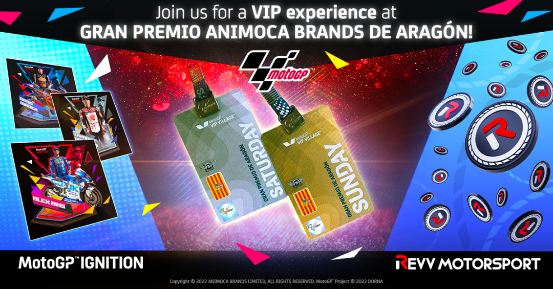 本周末的比赛将令人兴奋,因为这将是 Animoca Brands 首次成为 MotoGP™ 的冠名赞助商。我们希望与您分享这一特殊时刻,我们将带您继续了解如何通过拥有 REVV Motorsport NFTs 来确保您可以获得 MotoGP™ 阿拉贡大奖赛的 VIP 体验吧!
